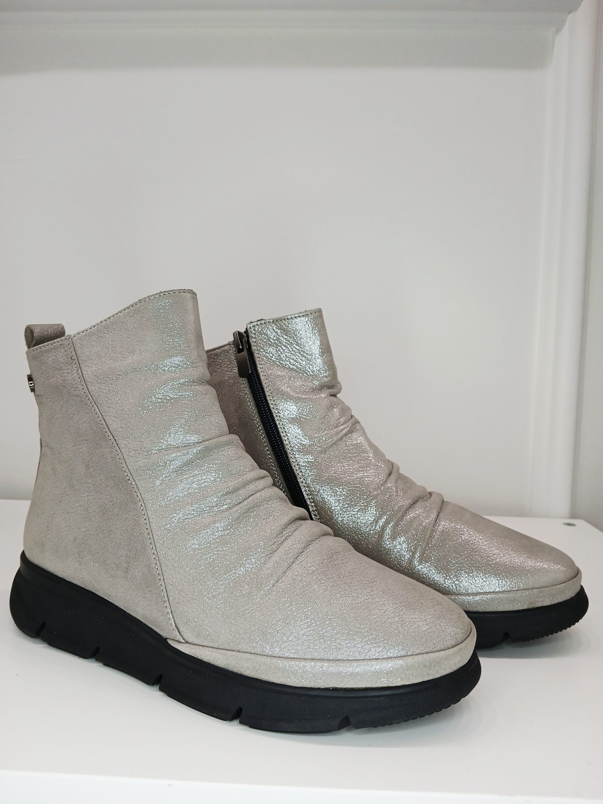 Tedd különlegessé a mindennapi megjelenésedet a Tutto Bene világos, csillogó bőr bokacipővel, amely egyszerre elegáns, nőies és kényelmes. A finoman fénylő bőr felsőrész garantálja a divatos, modern stílust, miközben tartósságot és minőséget kínál.